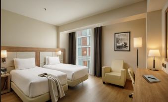 Last minute booked before our flight, 50 mins by tram from the city, tram is 5 mins walk pretty okay, if you are not rushing to get into city okay to book but front desk staff can definitely be more lively and friendlier as they seem unbothered and annoyed, room was okay for a short term night sleep.