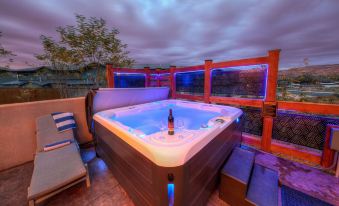 Live in the lap of luxury at this upscale outdoor oasis that provides private Hot Tub, and outdoor dining for 10! This Moab condo has high-end finishes and amenities. Play fun games on-site like Ping Pong, Cornhole and Badminton. Plenty of room for everyone thanks to large rooms and numerous beds. Start and end your day on the huge wrap-around second-story deck, taking in the incredible views.
