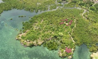Environment Location: The hotel is in a peaceful and beautiful natural environment, close to activities yet tranquil, with places like near the bay and mangroves, and huts fitting well into greenery