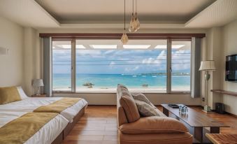大面窗景觀無敵的旅店,看了別人評論得知無人櫃檯的部份要提前聯繫取得密碼,房間很大及舒適,推薦給想去沖繩看海放空的旅人