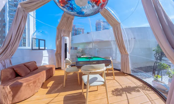 Relaxing Ambiance: Adorned with rattan sofas and wooden tables and chairs, interspersed with tropical greenery, it's the perfect spot to brew a pot of Kung Fu tea, enjoy the sea breeze, and watch the city lights twinkle – instantly melting away travel fatigue.