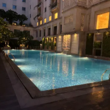 Lovely helpful staff. Nice room, bed. We were given two rooms next to each other as a family, not connecting unfortunately, I think they not available as we asked when booking well in advance. Good location in aerocity where there are plenty places to eat. Only shame pool closes at 7.30pm, which we justissed and kids were disappointed.