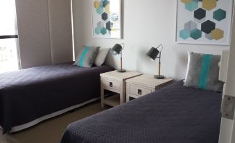 Bedroom 1:2 Single bed ● Bedroom 2:1 Queen bed