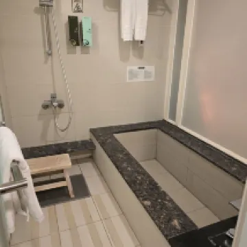 The hotel is located near a train station and easily accessible by buses. There are convenient stores and eateries around it. The hotel looks a bit old but it is clean and tidy. The bath tub is the key reason for me to pick this hotel. The bath water are from spring and certified by regulators.