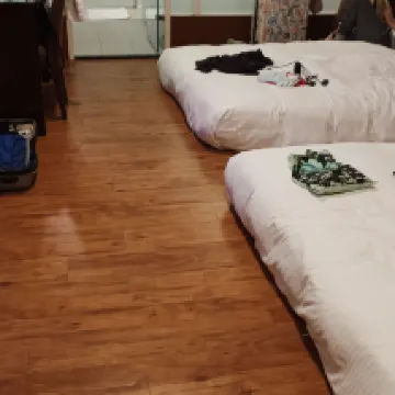 As soon as I walked in, I walked around in a circle. Seriously, this is the worst hotel I have ever stayed in! ! ! There are hairs everywhere...on the floor, on the quilt, in the bathtub...the quilt still feels a little wet, maybe the moisture is too heavy...?