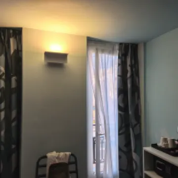 The hotel isn't very big, and I booked a room with breakfast included, which was reasonably priced and quite good. The only thing is, the breakfast was pretty much the same every day. Staying for 6 nights, it felt a bit monotonous; it would have been nice to have a little more variety. The location is excellent, right on a commercial street not far from the train station, which is super convenient if you plan on taking trains to visit towns around Nice.