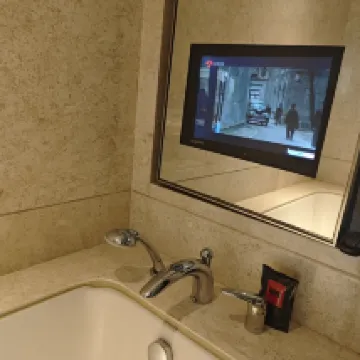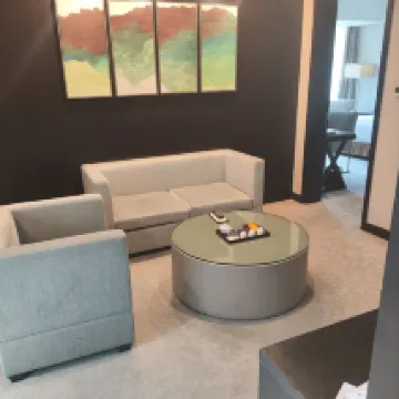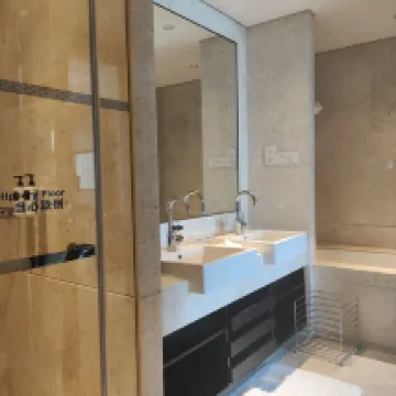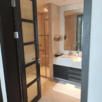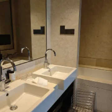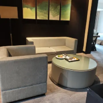 The room was very spacious and quiet at night, ensuring a comfortable stay. The bathroom was also generously sized and well-appointed with amenities. For suites, there's the added benefit of a living room and a guest powder room, which is ideal for hosting visitors. The bed was incredibly comfortable, allowing for a great night's sleep. Considering its location, it offers excellent value for money.