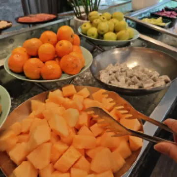 The breakfast spread was truly excellent, offering a wide variety of options. We especially loved the freshly brewed coffee, crispy *youtiao*, milk *douhua* (tofu pudding), and the sweet, fresh fruit. Our room featured smart lighting and electric curtains. The plush bedding and incredibly comfortable bed ensured a wonderful night's sleep, leaving us completely satisfied. The hotel's location is superb, with the subway station just 100 meters away. Definitely great value for money!