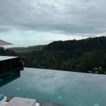 This lodge was absolutely gorgeous and had amazing panoramic views from the ocean to the top of Mt. Rinjani. The garden is lush and colorful and full of butterflies, dragonflies and swifts. Staff were very kind to us and the food was generally yummy though somewhat expensive compared to other restaurants nearby. The resort is an easy walk to the nearby waterfalls as well as Rinjani trailhead, but there is not much around the area. Swimming pools were nice. Our showers didn't have much water pressure and we could only get hot water to work in one bathroom. The rooms are nicely designed though and comfortable.