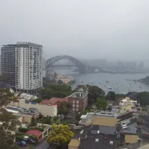 Location: Very good - very close to North Sydney Station. The view to the Sydney Harbour Bridge is excellent. Trade-off: Noticeable noise from the nearby railway.
