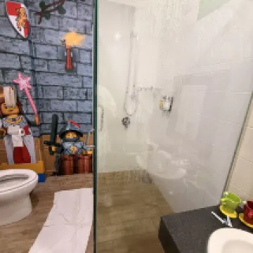 Both adults and children were thrilled to step into the LEGOLAND Hotel, completely immersed in the world of LEGO with LEGO brick creations everywhere. The room layout was excellent, providing separate spaces for adults and kids. The bathroom had a children's sink, but I don't understand why there was only shampoo and conditioner, no shower gel. The staff were enthusiastic, making for a great stay.