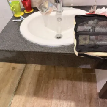 If you've ever stayed at a theme park hotel in China, then you absolutely should skip this one! It's much more convenient to just take a taxi from the city center. You can easily do all the rides at the park multiple times in just three hours! Seriously, though this is just my personal opinion, I felt like I was staying in a rented apartment. The bathroom has tiled walls, but the patterns look like stickers slapped on. The entire room is very dimly lit, with very few light sources you can control. Most importantly, there's no nightlight for the evenings, so it gets incredibly dark once the lights are off, and there isn't even a bedside lamp! For families with kids, this is truly awful! The cups were just sitting out like this when we entered! Shouldn't they be placed face down? The spoons are disposable but came without any packaging, making them feel really unsanitary! There was a lot of limescale on the shower floor, and it felt slippery.