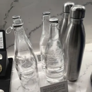 Water dispenser at lobby and water bottle provided in room