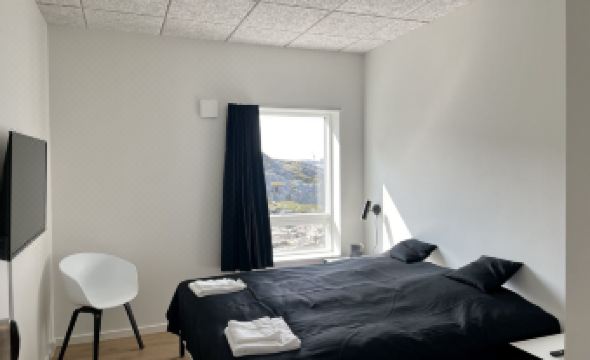 New, modern, clean, and affordable hostel rooms; close to the airport, one grocery store, one fast-food restaurant, and to glorious mountain hiking; short taxi or bus ride to downtown Nuuk. Two nice modern clean bathrooms, stocked kitchen, and large common area for each group of four bedrooms. Good WiFi. Pleasant and helpful staff on duty at variable times. Free laundry. Overall a great place to stay if you don’t mind being a couple miles from downtown!