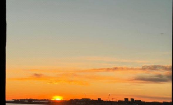 The view right now is fantastic. You can see the end of the runway and a beautiful picturesque view of the water and the distant houses in many colors. Nice quick walk up the hill. There is a nice shopping area. From there you can get the number one bus the downtown area for only 20 kroners a trip where a taxi would be about 56 kroners. The nice place is in downtown. Not much of a view of anything. From what I see. This place has a fantastic view but I think I may lose it soon cuz it looks like there's some construction nearby that looks like it's going to be blocked off.