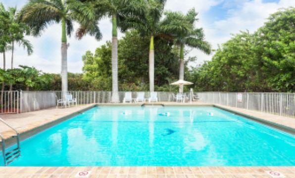 This hotel was a distance from the Hollywood airport, but when I called and asked for a shuttle, a driver came within 20minutes to pick me up. He gave me rather poor directions as to where to meet him, so I waited and texted him off and on for another 20 minutes before I was actually picked up.I wasn't familiar with the airport, so I did the best I could with my two pieces of luggage. Once at the hotel, I had paid for a room with two queen bed, but told the front desk lady I really preferred a king bed.She told me she couldn't change the room because I paid through a third party.The manager offered to help me with my luggage and I then asked him if I could get a room with a king size bed after seeing several small, loud children in the room next to mine.He was very nice and placed me in a quiet room with a king size bed in the back of the hotel. I finally got some sleep after a long flight.