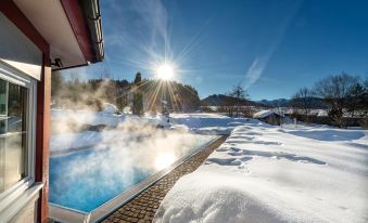 Wir haben in der Suite Himmelreich übernachtet - absolut zu empfehlen für einen Aufenthalt mit der Familie (z.B. Eltern + Kind & Großeltern). Der Außenpool und Garten ist schön gemacht. Das Frühstück und Abendessen waren sehr gut. Minuspunkte: - Kinderspielplatz voll in der Sonne und daher nicht nutzbar (Sommer) - Kinderspielbereich im Restaurant ist im UG bei den Toiletten - nicht schön - Kinderessen ist nicht im Preis inkludiert