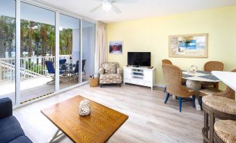 Not only is our location perfect and our condominium's sunny, but the view is unforgettable. Imagine an oasis of palm trees with cool, turquoise water running like ribbon (the lazy river) around gorgeous tropical landscaping. Lounge on our large porch and overlook sailboats floating by on the inner coastal waterway while watching the kids float by on the lazy river.