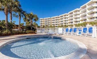 Our peaceful and inviting nautical condominium is perfect for an amazing bay and beach vacation. With a great location on the surreal Emerald Coast, a 700 foot Lazy River, you are sure to come back year after year. This unit is a ground floor unit/lanai where guests can sun or step outside the gate into the lazy river with a gorgeous bay side backdrop. The waterfall pool, gradual entry pool and two large hot tubs provide a variety of activities for water lovers. The patio/sunning decks in this water area provide both shade and sun for people of all ages. Large lounge chairs, tables & chairs, umbrellas are provided for your leisurely days spent by the lazy river. Grills w/ tables are provided in the green areas behind the lazy river. There is also a walkway for strolling alongside the bay and marina. Free beach service is provided when you go to the ocean. A toddler pool, hot tub, and Destin West's largest pool and exercise facility are the additional amenities found on the beach side. You can easily access the beach side by walking the sky bridge from bay to beach, or you can drive to the round-about in front of Destin West Beach Side, unload your family and beach equipment, park your car in the shaded parking deck and walk from there to the beach.