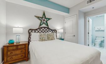 Located on Okaloosa Island, this four-bedroom, three-bathroom condo will easily become your Emerald Coast escape. With an open floor plan and bright, open spaces, each room is a retreat in itself. The master suite and living room offer access to the gulf front balcony. The entire common area has views of the water. The master bedroom has a king-size bed, and the bath offers a separate garden tub and shower, along with double vanities. The second and third bedrooms have queen-size beds, and the final room has a twin over full bunk. Two additional bathrooms complete the space. The living room and each bedroom has a flat-screen TV, with the living room and master having DVD players as well. Azure is nearby to an array of dining and entertainment options, most notable being all the venues at the Boardwalk on Okaloosa Island, including Rockin’ Tacos and Al’s Beachfront Burger Bar. Across the street from here is Wild Willy’s Adventure Zone, offering an arcade, miniature golf, and a ropes course, along with go-karts and more. Make Azure 417 your next vacation rental today- with so many amenities both on-site and nearby, you'll never stay anywhere else.