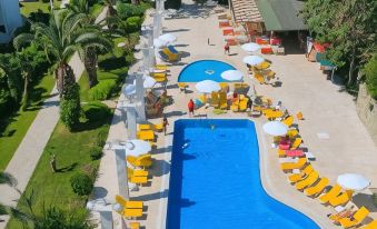 This review has been written considering both positive & negative experience of our stay. Check In: To start from the worst, we paid extra for x2 sea view rooms for our group of x3 adults. We had a late check in planned plus our flight was delayed, so we ended up arriving very late at night (next day morning?), between 2-3 am. We have been informed there are no 2 separate rooms available due to electricity issues in our block and that there is no other choice for tonight than to stay in a family room. It was not convincing for none of us that the issues have started at around our supposedly check in time the day before and I still believe they have double booked our rooms. There was a long argument with the reception staff, a manager (who didn't speak English) & holiday operator over the phone, none of it helped at all. It was nearly 5 am by the time we gave up due to been extremely tired and have agreed on what was given to us. The family room was rather a converted shop with almost no privacy inside and from the outside. Luckily, next day we have been given what we paid for and these rooms were good, sea view was amazing and we have received some complimentary stuff. Rooms: Sea view is worth extra money. Rooms are generally looking good with quite fresh refurbishing and stylish design. On the other side, there was no shampoo, we had to use the shower gel instead. Staff: Very random, as some were very polite and friendly while the others seemed clearly not much bothered, especially at the bar next to a water park. Alexandra, the reception senior staff, was extremely helpful and have answered all our basic questions that we did not have a chance to ask during our check in. Cleaning: Although it does say they change the towels every 3 days, we had to chase a cleaning lady to simply do some basics including emptying the bins as there were 2-3 days nobody came to our room at all. Food & drinks: The desserts were a true highlight, although I am not a fan of that stuff generally, I must say they were high quality and tasted like properly home made ones. Pasta by the sea bar was delicious, I had it a few times. The food in canteen was hit or miss, on most days it was alright but I felt very sick on one day and I am sure it is something to do with the food from the main kitchen. Cocktails quality very much depended on a bartender, it was a lot better at the beach bar. Beer was not the best but okay, wine was not drinkable at all. Animation: The ones we chose to go to were good, although the announcements were very late, sometimes just a few hours before the actual start. Pools & swimming: Choices for everyone. The further from the main reception, the better vibe you get. 1st pool next to the rides, lots of people with children. 2nd pool is further, nicely decorated and quiet but with no proper bar. 3rd seawater pool, in my opinion the best and the furthest. There is a pier by the sea with some sunbeds, for the ones who prefers swimming in t