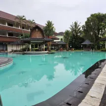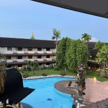 Kamarnya nyaman, ac dinginn dan kamar mandi ada bathtub nya! Lobby hotel terkesan mewah dan tua, cantik! Staff hotel ramah. Ada kolam renangnya dan di sore hari (mungkin saat weekend saja, cmiiw) ada anak anak yg belajar renang, lucu sekali! Untuk makanan hotel biasa aja.