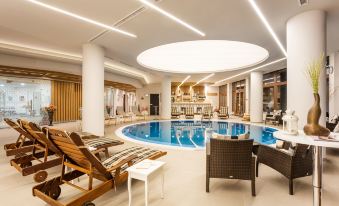 Myself and my two children staying here for a week of skiing. Everyone of the staff are super helpful and friendly. The hotel is very nicely presented and clean. It deserves its 5 stars. Spa is super also. Had a massage and was very nice. The sunset this morning at breakfast was breathtaking. Food is delicious also. We would come back here again for sure.