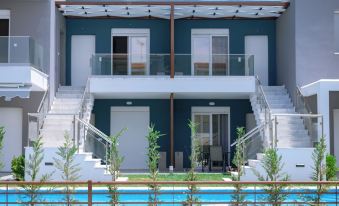 The hotel is located at Paralia Ofryniou.Where is Perla Residential Complex located?