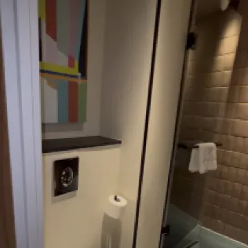Nice and clean designed hotel. The bathroom is really large and I like the style.