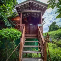 A place for those who love nature. The houses are located right by the river. The veranda with tables is magnificent. The rooms are large, in fact you get a whole house with one floor.