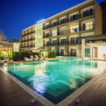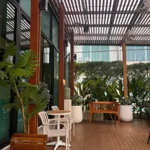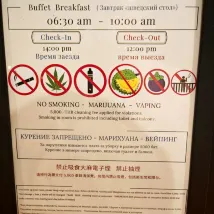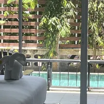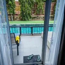 The shared pool and small gym are open until 22:00, after which guests are asked to leave - this ensures silence for those whose windows overlook the common area. There is no lobby as such: only a reception desk, a couple of chairs and a scale for luggage. On the veranda at the entrance you can have breakfast, smoke or drink (also until 22:00).
