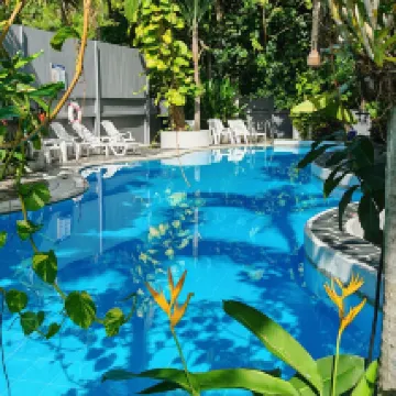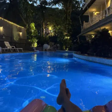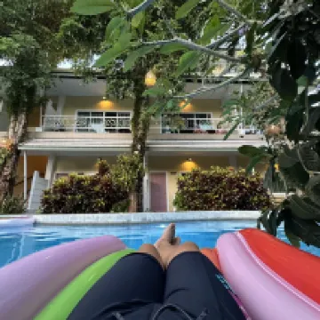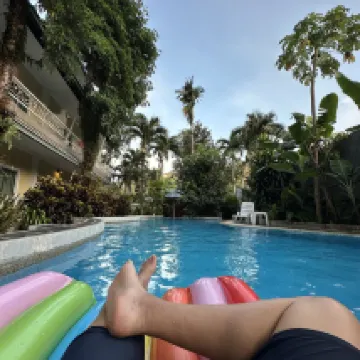 Good hotel, incredibly hospitable and very friendly hostess with a cool parrot, the hotel is surrounded by greenery, there is a swimming pool, motorcycle rental without a deposit and passport, to the sea only by transport, 7/11 nearby. Quiet at night.