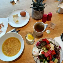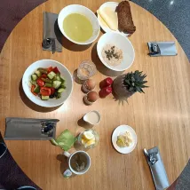I stayed in several hotels in Vienna and Prague. All the other hotel breakfasts were good, but this one was an exception. The sausages were dry, and there were no hot vegetables.