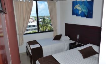 We stayed here for two nights during our visit to the Galapagos, and overall, it was a pleasant experience. The room was spacious, with a large, comfortable bed that made it easy to relax after a day of exploring. While the room itself wasn't anything overly fancy, it had all the essentials, including a full-length mirror, which was a nice touch. The location was fantastic — situated near the main strip, with easy access to shops, restaurants, and attractions. Plus, it was right across the street from two fantastic empanada stands, which made grabbing a quick, cheap, and delicious bite incredibly convenient. The only downside was the window in the room, which opened to a wall, so there was no view to enjoy. Additionally, there wasn't a safe in the room, but this seems to be a common issue in the Galapagos. Another aspect that could be improved was the shower. The water pressure and temperature fluctuated frequently, often getting too hot, which was a bit frustrating. Despite this, I felt comfortable, and the hotel met our basic needs during our short stay.