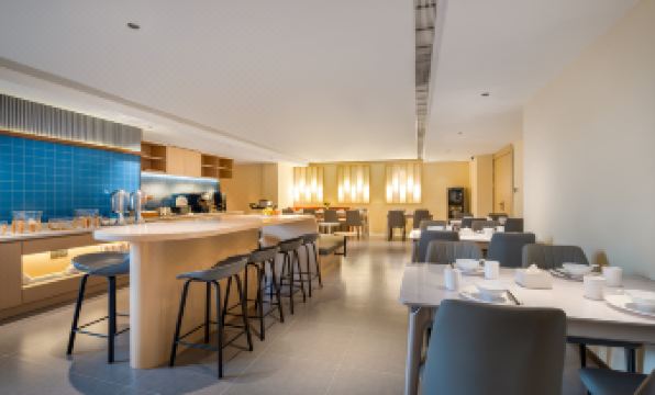 The breakfast selection is mediocre. I've stayed twice, and it's always the same two dishes: shrimp and fried pork. If you like that, great, but could you please change the menu? Secondly, the kitchen staff don't even wear hats or masks, just walking around in front of guests – very inconsiderate!