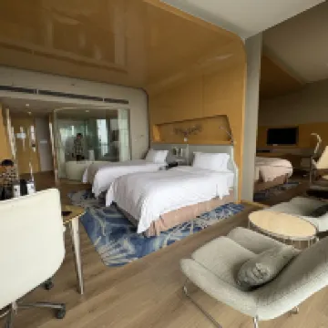 My first time staying in a five-star hotel, and my high expectations were thoroughly met! The staff were incredibly welcoming and proactively helped with my luggage. The location is excellent, with beautiful night views. You can gaze into the distance and take in all the stunning scenery.