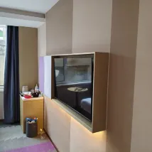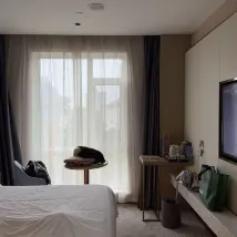 Outdated Room Facilities: The electric curtains in my room were broken – they wouldn't open or close, and couldn't even be pulled manually. I called the front desk for repairs and had to wait a very long time for someone to come. Eventually, they detached the curtain from its motor, allowing me to operate it manually, which I accepted as a temporary fix. The technician left after 'fixing' it. However, later, I kept hearing a noise from the curtain. When I pulled it open to check, I saw the motor was still there, constantly running! I had to call the front desk *again* to have a technician come back and completely remove the motor. Throughout this entire ordeal, the hotel front desk never followed up. It seemed they didn't even bother to take this faulty room out of service. The technician simply addressed the immediate problem without truly resolving it or removing the errant motor. All these incidents highlighted a complete lack of attention to detail.