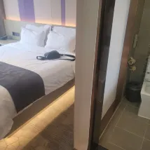 The hotel is conveniently located near the beach, just a 10-minute walk to Tiger Stone (Laohushi) and other free beaches. The room comes with an air purifier, which is necessary as the room can get musty without it. However, it gets quite noisy when running at night. Cleanliness was acceptable, though the bath and hand towels were quite worn. The bed space was good, making it quite spacious for two adults and two children.
