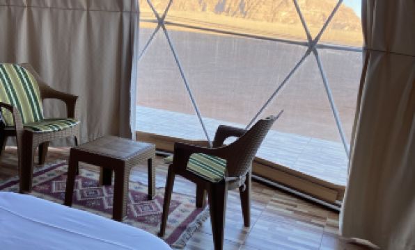 Before checking in, contact the staff. They will give you a phone number. I contacted them via WhatsApp. We were told where to come and leave our car, it was a gas station, and then they took us away in their Toyota Hilux. When checking in, we were offered a package of services: a 4-hour jeep tour of the Wadi Rum desert, unlimited dinner but drinks are paid, and a night excursion to the desert with lying on the sand, tea and hookah. Everything costs 200 JD for two. We did not bargain, everything suited us. There is also an excellent breakfast with drinks included in the price of accommodation.