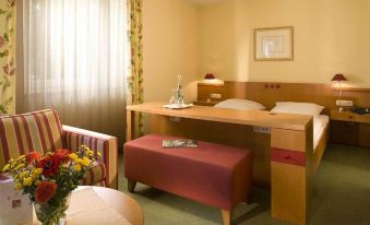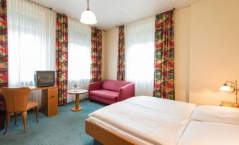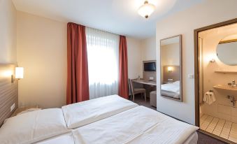 Had booked Standard Doppelzimmer; ended up with a very small room at the top level. The bathroom door could only be opened partially and hit the sink. Bathroom looked extremely dated (i.e. deferred maintenance and cleaning). Window was difficult to open and close and the tilt function was not working (again, maintenance issue). Because there's no A/C need window for ventilation esp. during warm days. Bed was ok, but pillows seemed to be very old as they collapsed to nothing once lying on them. As for the room - very disappointing ! esp. since the website pics imply something different. Breakfast was good but hard to make up for a bad night's sleep.