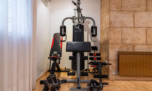 Reus: Luxurious villa "Villa Luxury Rock Tirri", 2 storeys, built in 2000. In a quiet, sunny position residential area (villas), traffic calmed area. Private: beautiful garden to relax, swimming pool kidney shaped (8 x 3 m, depth 130 - 180 cm, seasonal availability: 01.Jan. - 31.Dec. and 01.Jan. - 31.Dec.). Patio, arbour (swing). In the house: lounge, WiFi, fitness room, solarium, hot tub, billiard table, table football, air conditioning, laundry, washing machine, drying room. Bus stop 300 m. Golf course (18 hole) 2 km. Nearby attractions: Parque temático PORTAVENTURA 13 km, Ferrari Land 13 km, Acquapolis 13 km, Gaudí Golf Club 2 km, Lumine Golf Club 13 km. Please note: car recommended. The owner does not accept any youth groups. Airfield close by 5 km from the property. "Villa Luxury Rock Tirri", 5-room villa 360 m2 on 2 levels. Object suitable for 8 adults. Spacious and bright, renovated in 2023, modern and luxurious furnishings: open living/dining room with TV and digital TV (flat screen), Home cinema wood-burning stove and air conditioning. Exit to the patio, to the swimming pool. 1 room with 1 french bed (150 cm, length 200 cm), TV and digital TV (flat screen), air conditioning, fan, forced-air heating and electric shutters. 1 room with 1 french bed (150 cm, length 190 cm), TV and digital TV (flat screen), air conditioning, fan and forced-air heating. 1 room with 1 bed (90 cm, length 190 cm). 1 room with 1 bed (90 cm, length 190 cm). Open kitchen (oven, dishwasher, 4 ceramic glass hob hotplates, toaster, kettle, microwave, freezer, grill, electric coffee machine) with electric shutters. Exit to the patio, to the swimming pool. Bath/WC, shower/bidet/WC, hydro massage shower, hydro massage bath. Air-conditioning, forced-air heating. Solar power. Upper floor: 1 room with 1 french bed (150 cm, length 200 cm). Large patio 300 m2. Terrace furniture, barbecue, deck chairs, covered balcony. View of the sea, the swimming pool and the garden. Facilities: washing machine, dryer, safe, iron, children's high chair, baby cot, hair dryer, logs (extra). Internet (WiFi, free). HUTT-040298