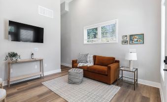 This brand new 600 square foot one-bedroom with a modern, open floorplan, comes complete with a queen-sized bed and restful queen-size pull-out sleeper sofa. Relax or work from home with free, high-speed Wi-Fi, full assortment of bath products, Leesa mattress on the main bed, and modern tiled rainfall showerhead. Your kitchen comes loaded with all pots, pans, cooking utensils and every dish you'll need. Off street compact parking space included with your stay and all other vehicles can park on the street with free, untimed parking. Enjoy two 50-inch HD Smart TVs, & fully stocked coffee bar to keep you going when you're "on the go."About pets:No pets allowed.About checkOut:Check out before 11:00 AM.About children:Children allowed: ages 0-17.About checkIn:Check in after 4:00 PM.About smoking:Smoking is not permitted.About minBookingAge:Minimum age to rent: 21.About events:No events allowed.