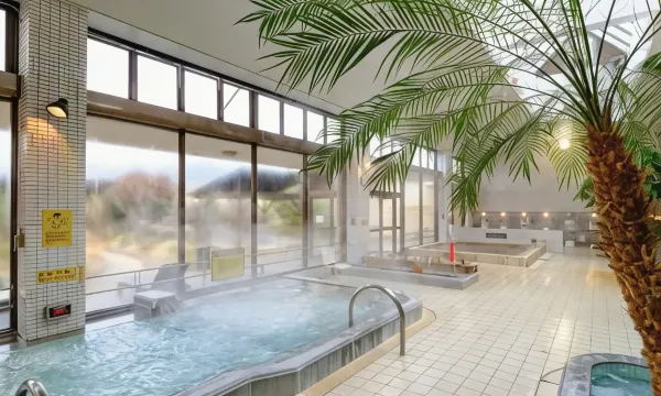 The hotel is clean, but the facilities are a bit old. There are indoor and outdoor hot springs. There are two restaurants inside the hotel, and a ramen shop across the street also serves food. It's about a 15-minute bus ride from the train station.