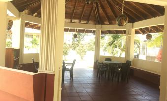 Es un hermoso hostal. Posee agua caliente, presión de agua, cocina compartida, habitaciones amplias y un parque hermoso. Los dueños son una pareja muy amable y servicial. Se encuentra a pocas cuadras del aeropuerto y alejado del bullicio. Está cerca de un supermercado y a pocas cuadras del centro. Es muuuuy tranquilo, lo recomiendo al 100%