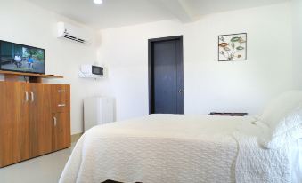 Clean hotel with very welcoming atmosphere, clean and comfortable, there is microwave and fridge, but if you’re not speaking Spanish it would be hard to communicate. Real downside that there is no decent food establishment around, everywhere roasted in oil greasy chicken, except Fisherman Place - restaurant right on traffic lights intersection (but lately becoming to expensive). By my opinion for 1 person price hotel is overpriced, 70-80$ for one night is too much, you’ll find on Airbnb better price. Another thing it is Latin America and if some of Latino guest on vacation they drinking and don’t care about neighbours around and will listen own boombox as loud as it possible. Owner doesn’t really care about situation and not trying to calm down noise. Will not come back.