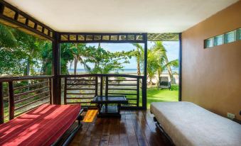 Absolutely amazing place! Direct on the beach, nice beach. Totally quiet. With hammocks, beds and chairs. Very comfortable. The pool is clean and good when there is low tight. Very very nice stuff. Good room size. Aircon is cold. Water is hot and enough pressure. Good food as well! I would definitely come back. Could value for price. We stayed in another place before and changed to this one and extended our stay! Very quiet place and close for the nightlife. On Fridays the hotel next door makes the party's and you can walk back home on the beach.