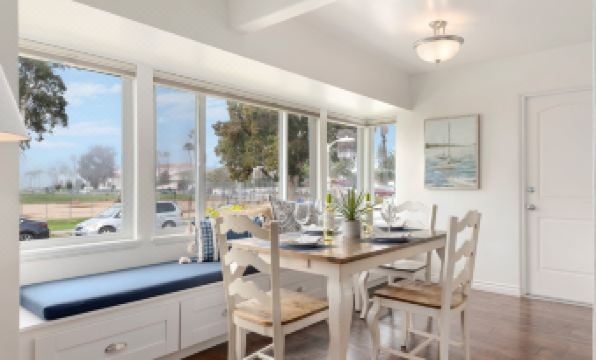 East Beach Vista (Front unit) - As the front unit of the duplex, this comfortable, freshly updated two-bedroom, one-bath cottage is equipped for comfort. The kitchen features new appliances and amenities to delight the budding chef. Dine at the generous window seat dining area beneath a picture window that frames views of the ocean and the neighborhood park across the street. With many windows, the living room, with television and comfy seating on two couches, is a bright and sunny space. A couple of Adirondack chairs make a great place to watch sunset out front too. (Link to full profile)