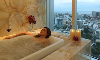 Our hotel is conveniently located near key corporate centers, shopping, and dining destinations. Savor dining at our two unique restaurants and Blu Pool Bar, and relax in our spa. Enjoy stunning views from the roof deck terrace bar with infinity pool, overlooking the city.