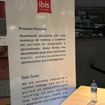 We and all the guests who checked in on 04/06/204 had a lot of problems checking in at the hotel. We arrived at 2:00 pm and were only able to get into our room at 9:45 pm, as we were supposed to be up at 5 am to participate in the São Paulo marathon. The services were slow due to a slowness in the system. However NO contingency plan was activated and when asked how we could be compensated for this inconvenience, no employee had any justification. A shame for such a large network.