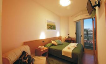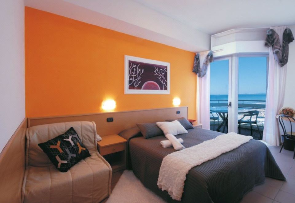 Buona posizione fronte mare ma struttura da rinnovare. La camera troppo stretta e con bagno senza finestra (e senza areatore). Colazione all'italiana con poca scelta per chi vuole mangiare salato, molte torte e ciambelloni sono confezionati. La cena ha delle porzioni molto misere (16 mezze maniche per porzione), se si arriva mezz'ora dopo l'apertura si rischia di non trovare più contorni e dover attendere per i piatti puliti, si parlava di frutta e dolci al buffet ma non è vero, la frutta è sempre la stessa (prugne e albicocche, se ti va bene qualche acino di uva e delle peschenoci dure come pietre) mentre il dolce te lo porta il cameriere (poca scelta e gelati confezionati molto dolci e tutti dello stesso sapore). Avevo prenotato il parcheggio ma per 2 giorni ci siamo dovuti arrangiare perché non lo avevano riservato, una della reception ci aveva assicurato il posto per il giorno successivo e invece non è stato così, dovendo quindi pagare sulla strada le striscie blu. Essendo un hotel attrezzato per i bimbi, sarebbe opportuno avere il frigo in camera, ho dovuto mettere il latte per mio figlio nel frigo comune alla mercé di tutti. L'animazione è adatta ai bambini anche se un'animatrice non aveva molta pazienza con i più piccoli, per gli adulti non c'è molto intrattenimento. La nota positiva è la presenza di giochi e scivoli per intrattenere i bambini, sia in hotel che in spiaggia. Nota negativissima, sabato notte musica da discoteca fino alle 3.30, mio figlio si è svegliato più volte e anche noi abbiamo avuto difficoltà a dormire (con finestra e persiana chiusa).